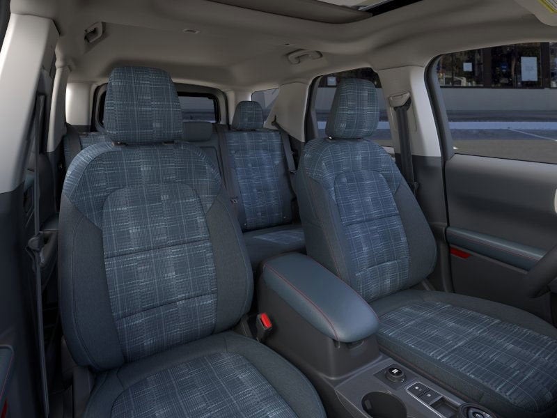 Equipped with Ford Connectivity Package (1-Year Included), Internet access capable: 5G Modem - Ford Connectivity Package, 4-Wheel Disc Brakes, 6 Speakers, ABS brakes, Air Conditioning, Alloy wheels, AM/FM radio: SiriusXM with 360L, AM/FM Stereo, Apple CarPlay/Android Auto, Auto High-beam Headlights, Automatic temperature control, Brake assist, Compass, Delay-off headlights, Driver door bin, Driver vanity mirror, Dual front impact airbags, Dual front side impact airbags, Electronic Stability Control, Emergency communication system: SYNC 4 911 Assist, Exterior Parking Camera Rear, Four wheel independent suspension, Front anti-roll bar, Front Bucket Seats, Front Center Armrest, Front Driver/Passenger Seat Back Map Pockets, Front reading lights, Fully automatic headlights, Heated door mirrors, Illuminated entry, Knee airbag, Low tire pressure warning, Occupant sensing airbag, Outside temperature display, Overhead airbag, Overhead console, Panic alarm, Passenger door bin, Passenger vanity mirror, Plaid Cloth Front Bucket Seats, Power door mirrors, Power steering, Power windows, Radio data system, Rear anti-roll bar, Rear Parking Sensors, Rear reading lights, Rear seat center armrest, Rear window defroster, Rear window wiper, Remote keyless entry, Security system, SiriusXM with 360L, Speed control, Speed-sensing steering, Speed-Sensitive Wipers, Split folding rear seat, Steering wheel mounted audio controls, SYNC 4 with Enhanced Voice Recognition, Tachometer, Telescoping steering wheel, Tilt steering wheel, Traction control, Trip computer, Variably intermittent wipers, and Wheels: 17 Oxford White-Painted Aluminum.