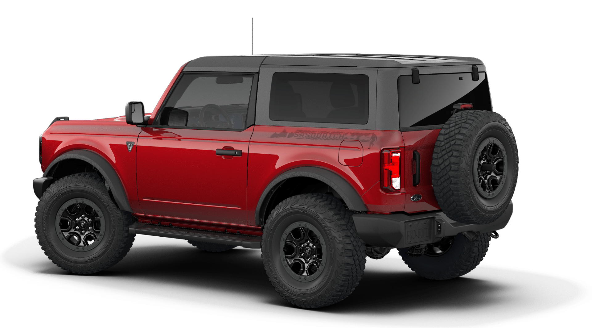 Equipped with Equipment Group 101A (AM/FM Stereo, Cloth Bucket Seats, SiriusXM with 360L, SYNC 4, and Wheels: 16 Bright Polished Silver-Painted Steel), Ford Connectivity Package (1-Year Included), Sasquatch Graphics Package, Sasquatch Package (High Clearance Fender Flares, High Clearance Suspension, Position-Sensitive Bilstein Shock Absorbers, and Wheels: 17 Matte Black Alloy), 4-Wheel Disc Brakes, 7 Speakers, ABS brakes, Air Conditioning, AM/FM radio: SiriusXM with 360L, Auto High-beam Headlights, Brake assist, Compass, Convertible HardTop, Convertible roof lining, Delay-off headlights, Driver door bin, Driver vanity mirror, Dual front impact airbags, Dual front side impact airbags, Electronic Stability Control, Emergency communication system: 911 Assist, Exterior Parking Camera Rear, Front anti-roll bar, Front Bucket Seats, Front Center Armrest, Front reading lights, Front wheel independent suspension, Fully automatic headlights, Glass rear window, Heated door mirrors, Illuminated entry, Integrated roll-over protection, Low tire pressure warning, Occupant sensing airbag, Outside temperature display, Overhead airbag, Overhead console, Panic alarm, Passenger door bin, Passenger vanity mirror, Power door mirrors, Power steering, Power windows, Radio data system, Rear window defroster, Rear window wiper, Remote keyless entry, Security system, Side Step, Speed control, Split folding rear seat, Steering wheel mounted audio controls, Tachometer, Telescoping steering wheel, Tilt steering wheel, Traction control, Trip computer, Variably intermittent wipers, and Wheels: 17 Black High Gloss-Painted Aluminum.